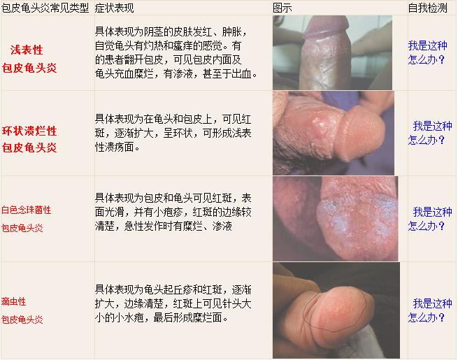 临床上将龟头炎分为浅表性包皮龟头炎、环状溃脓性包皮龟头炎、白色念珠菌性包皮龟头炎、滴虫性龟头炎: